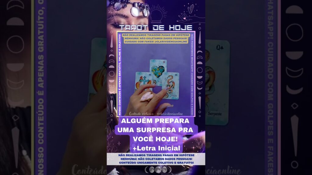 Consulte seu “tarot de hoje” de forma online. Descubra o que o oráculo e baralho cigano tem pra te revelar. Atualizações diárias. Se inscreva e compartilhe nosso conteúdo produzido especialmente pra você aqui no “Clarividência Online” https://youtube.com/@clarividenciaonline