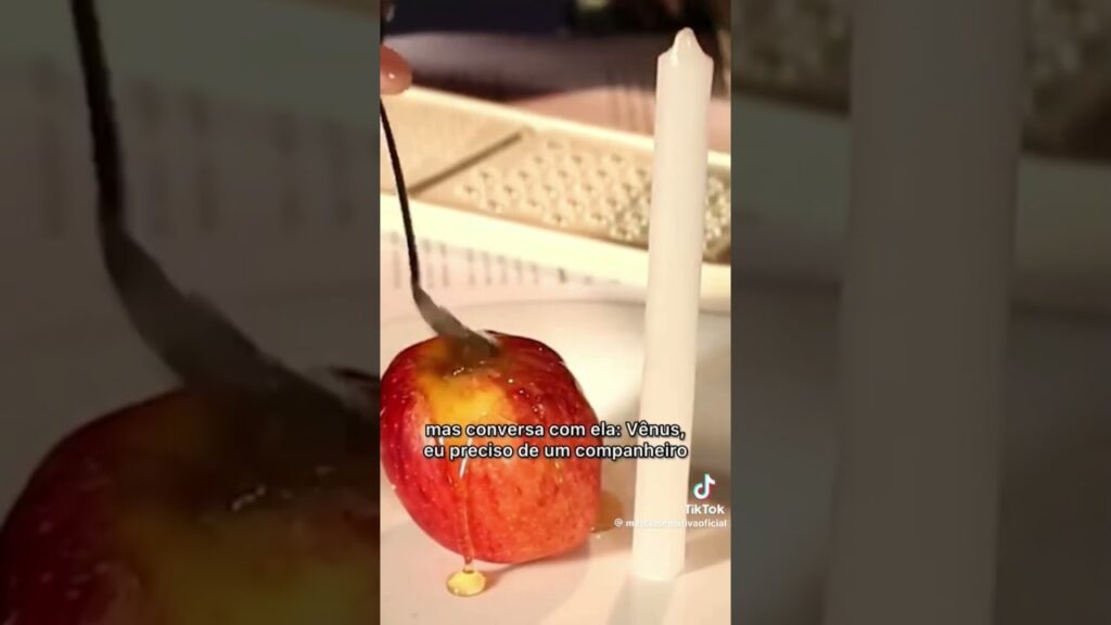 “Simpatia da maçã para o amor” subrescreve o canal e acompanha #simpatias #amor #shots